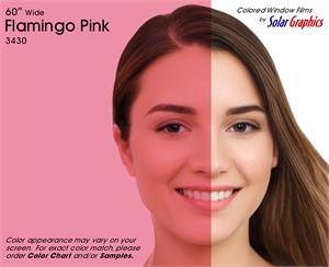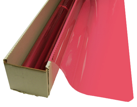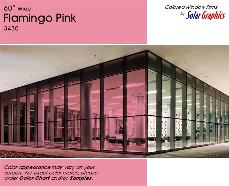 Flamingo Pink .... Visual Light Transmittance 56% | Total Solar Energy Rejection 27% --------------------------------------------------------------------------- Transparent | Non-Reflective | UV Weathered Deep Dyed Polyester | Pressure Sensitive | Scratch Coated