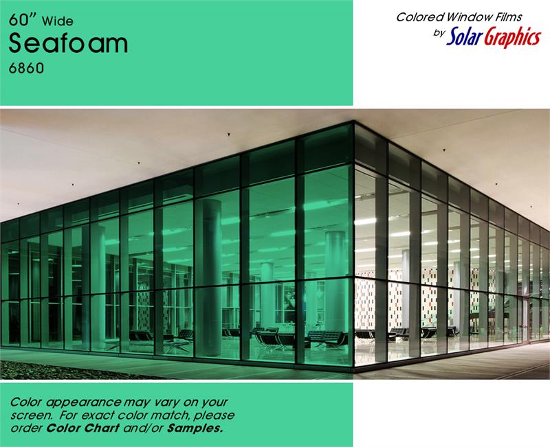 Seafoam .... Visual Light Transmittance 40% | Total Solar Energy Rejection 39% --------------------------------------------------------------------------- Transparent | Non-Reflective | UV Weathered Deep Dyed Polyester | Pressure Sensitive | Scratch Coated