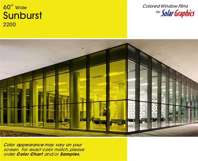 Applications: . This film is designed for long-lasting application to (but not limited to) glass. Apply to the interior side of glass: windows, doors, skylights, and curtain walls. Apply to acrylic and polycarbonate in areas with little to no sun exposure. Exterior application may require covering with an outside weatherable film. Contact Solar Graphics, Inc. to review your project requirements to determine product suitability. Material is applied wet, using a specific soap solution. Solar Graphics film materials are designed to be applied in multi-layers (up to 6) to obtain a variety of color combinations for specific color matches, reflectance, transparencies, translucencies, or opacities.